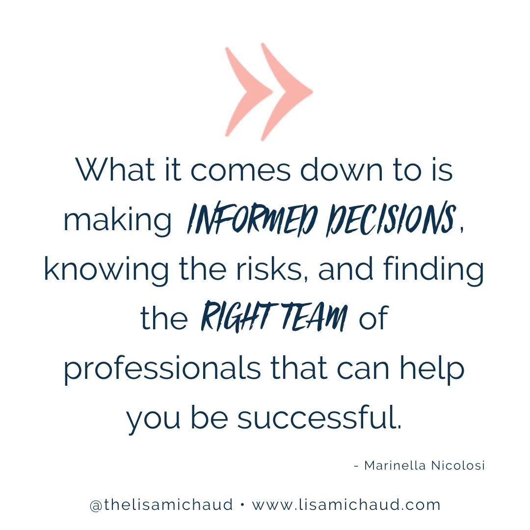 “What it comes down to is making informed decisions, knowing the risks, and finding the right team of professionals that can help you be successful.” - Marinella Nicolosi